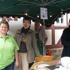 Den Gottesdienst zum Beginn des Festes gestalteten die Frauen und Männer des Kirchenchores musikalisch mit. "Viele verschiedene 'Steine' geben einem Gebäude seine Gestalt" - In übertragenem Sinne: Alle Menschen, die in der Gemeinde mitwirken, so das Thema des Gottesdienstes. Im Rahmen der Feier stellten sich auch die beiden neuen Mitarbeiterinnen von Pfarrer Hummel vor: Frau Beate Lippert, die in Treysa lebt und die Ausbildung zur Gemeindereferentin jetzt abschließt und Frau Mechtild Lotz, die nach 7 Jahren in anderen Aufgabenbereichen jetzt wieder ihre Arbeit als Gemeindereferentin hier aufnimmt. Nach dem Gottesdienst nutzten viele die Gelegenheit auf dem Pfarrhof zum Mittagessen zu bleiben. Eine Hüpfburg, Minicar-Rennen und andere Spiele boten den Kindern Unterhaltung, während die Trinitatisbläser ihre Musik zur Kaffeezeit erklingen ließen.